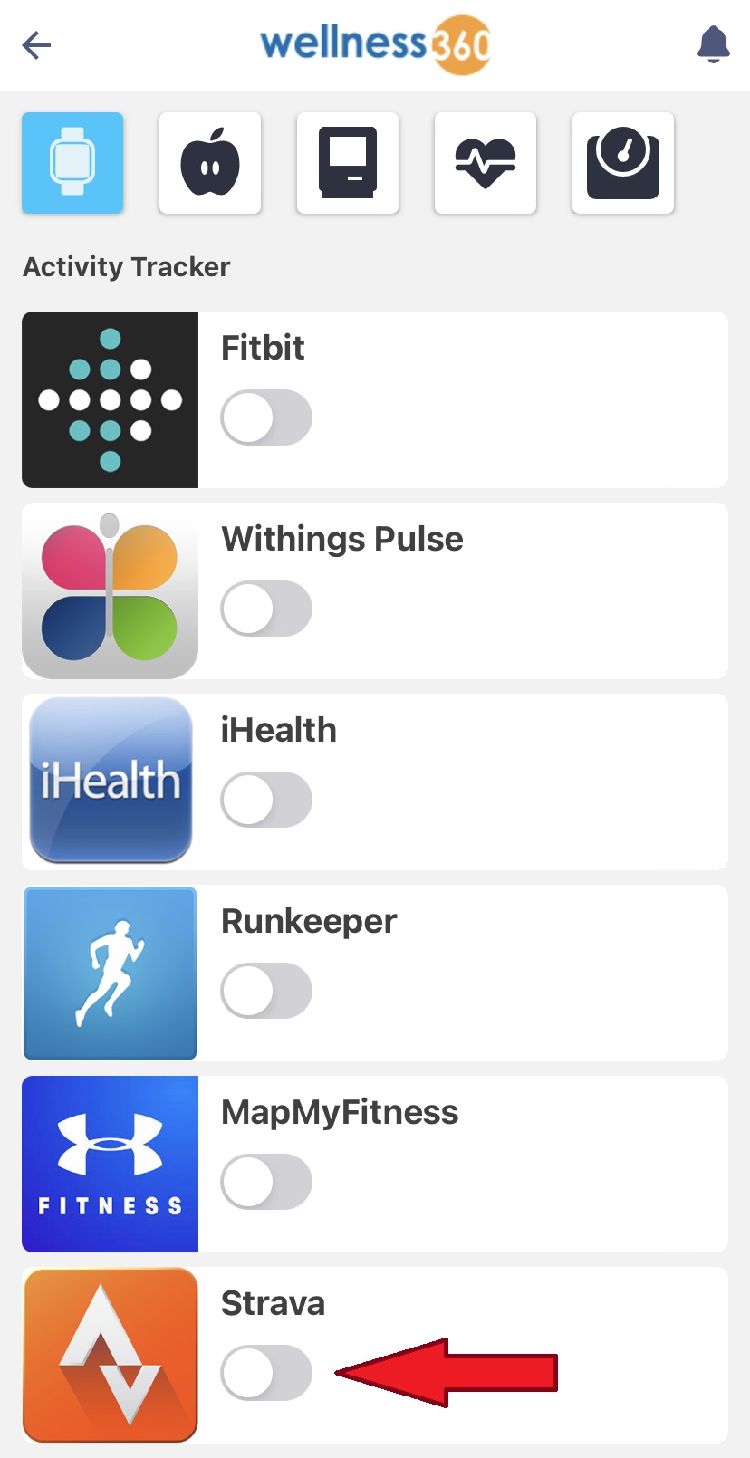 Wellness360 supports Strava as a tracking app. It can be connected and synced either from the web portal or the mobile app, Wellness360.