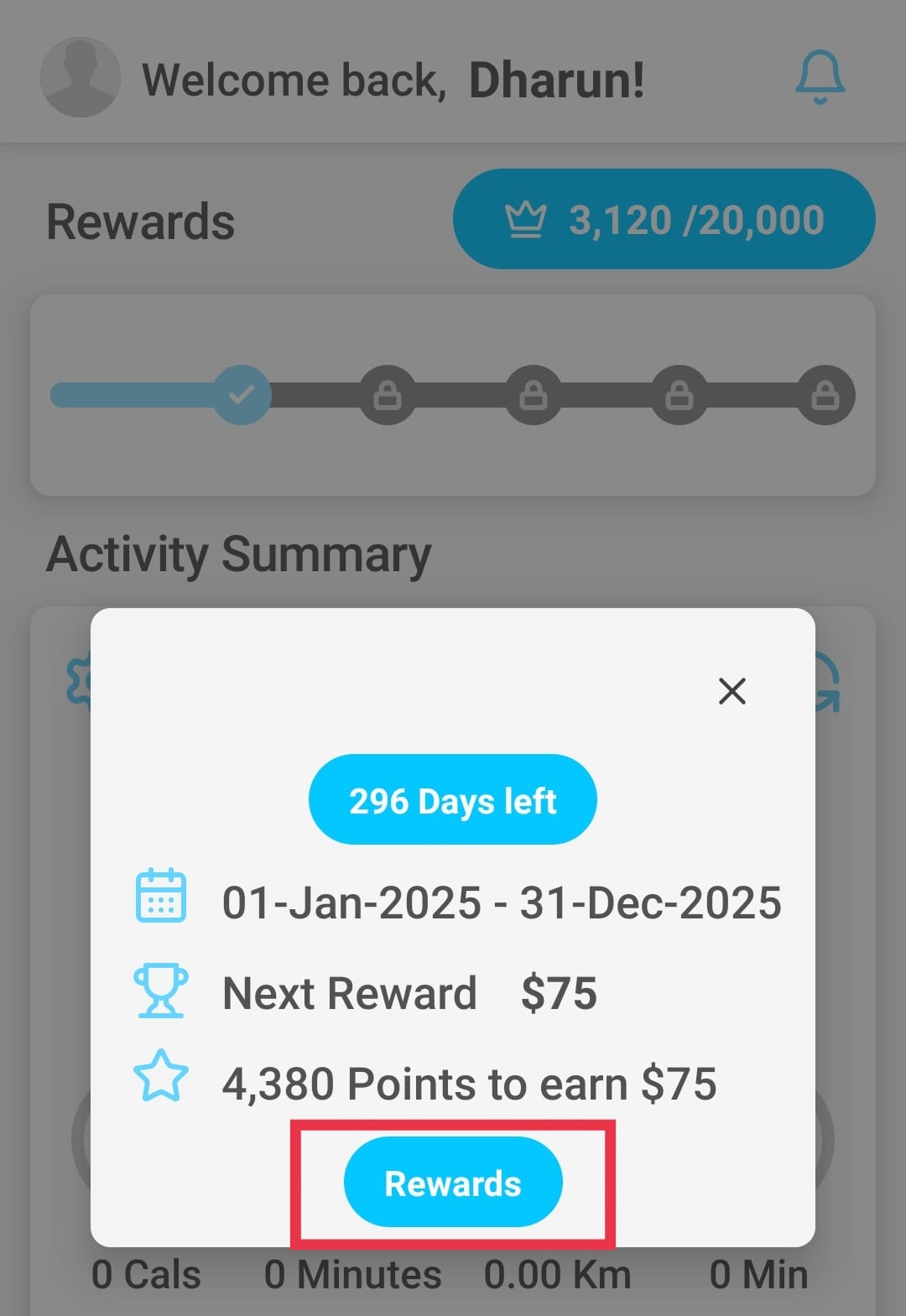 2. You can view a brief of your earned rewards points in the Rewards section on the app dashboard.