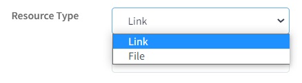Resource type - choose from the dropdown if the new resource is a file or a link