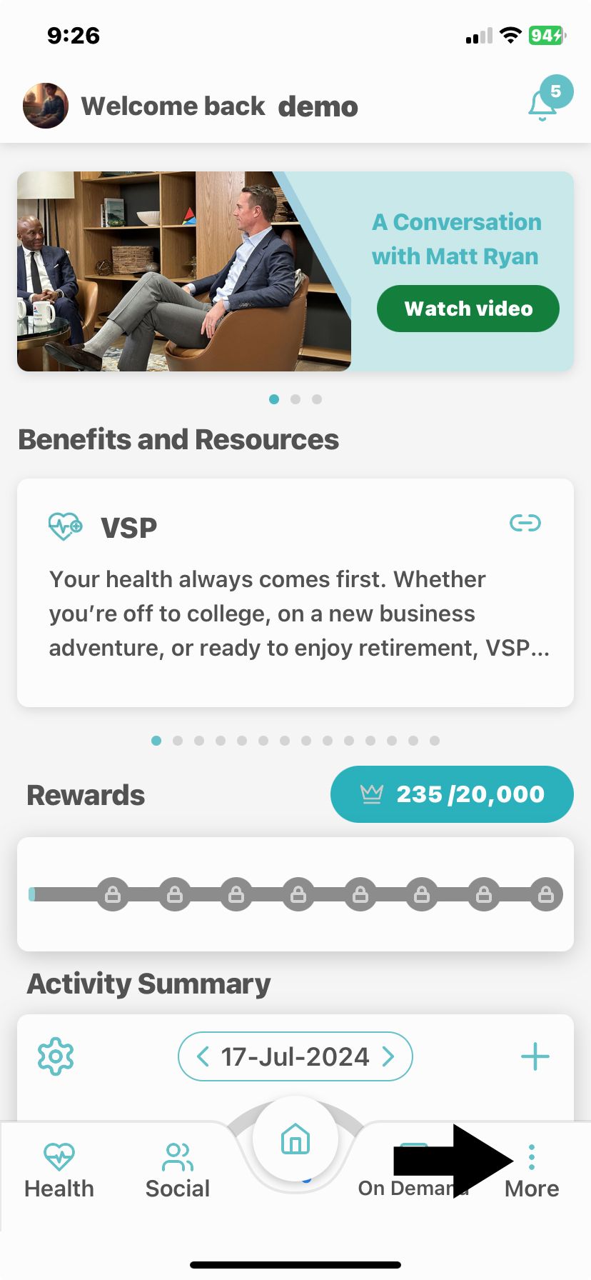 => From Wellness360 mobile app: Log in to your Wellness360 account on mobile app.
