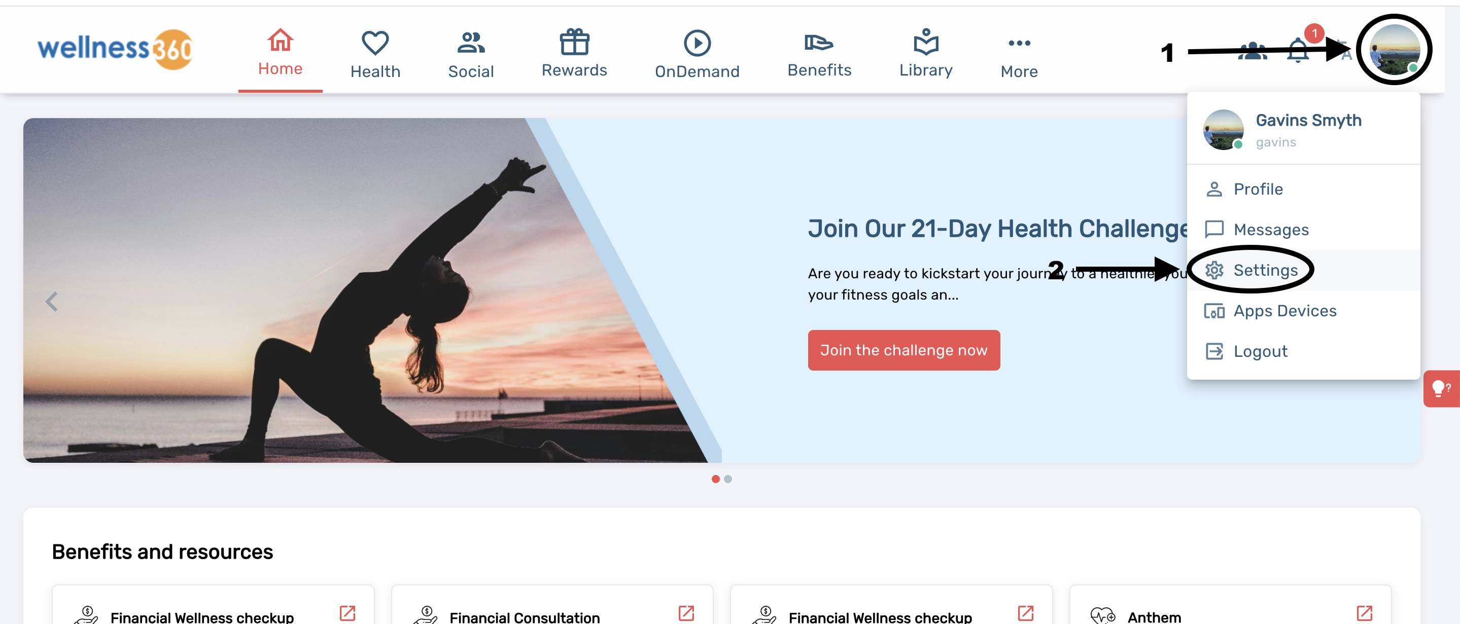 From the user portal: Log in to your Wellness360 user account on the web browser.