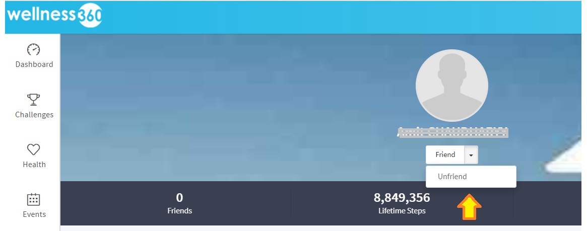 Although the idea of allowing Friend Connections through the wellness program is to improve social wellbeing amongst co-workers, there could be times when users might have to remove any Friend from the list. A friend can be removed only if they are already on your friend list. This can be done from the web portal.